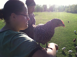 But, I wanted a bit larger chicken family. When I saw an ad posted on Craig's List that someone had barred rock hens and easter eggers of a similar age to the girls that were free ranging, for only $8 each, I knew we had to add to the flock! And boy, am I glad we took a trip to this guy's house!