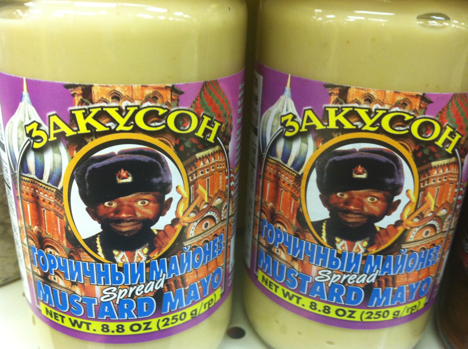 Flava Flave's Russian brother has found a job selling mustard. I think I'll pass on the "mustard mayo spread."