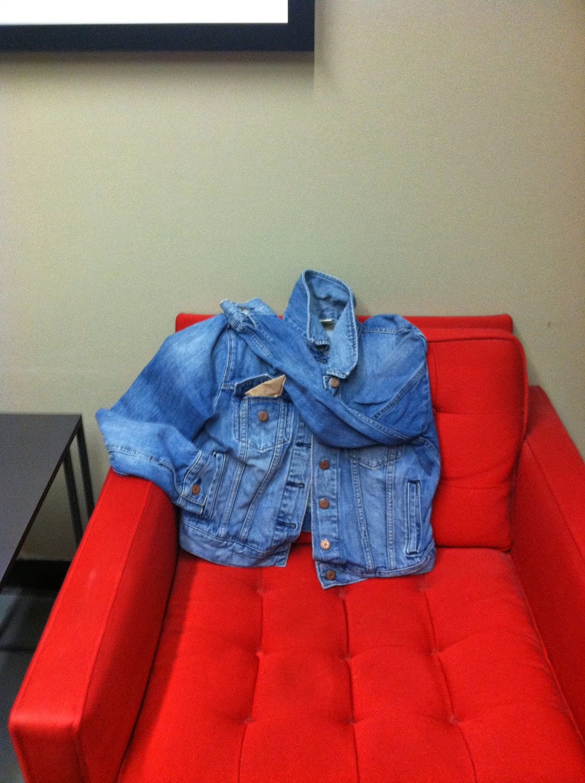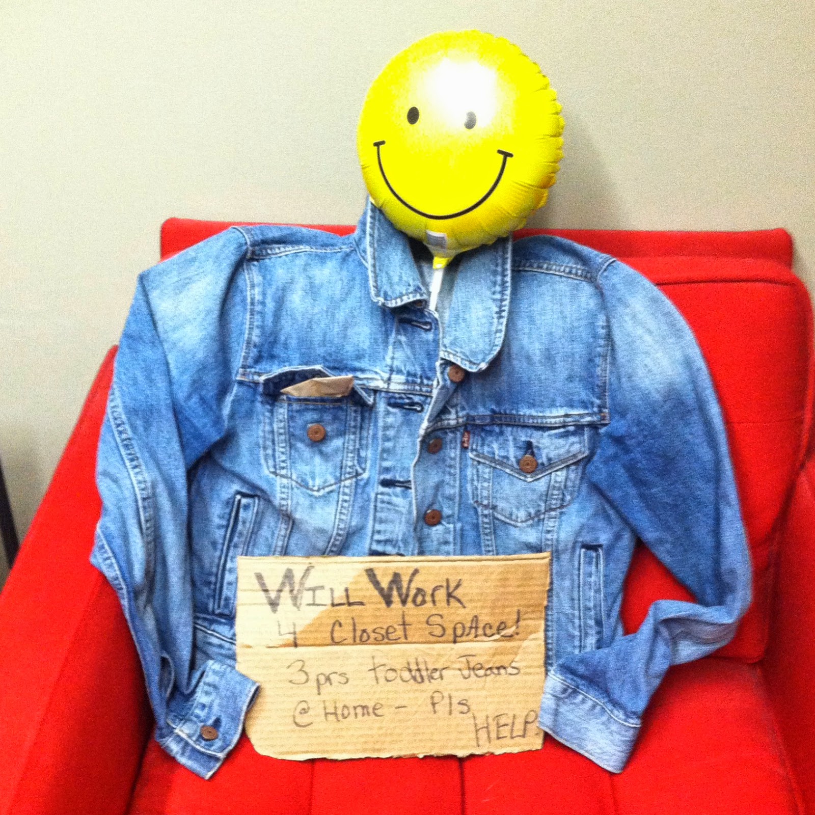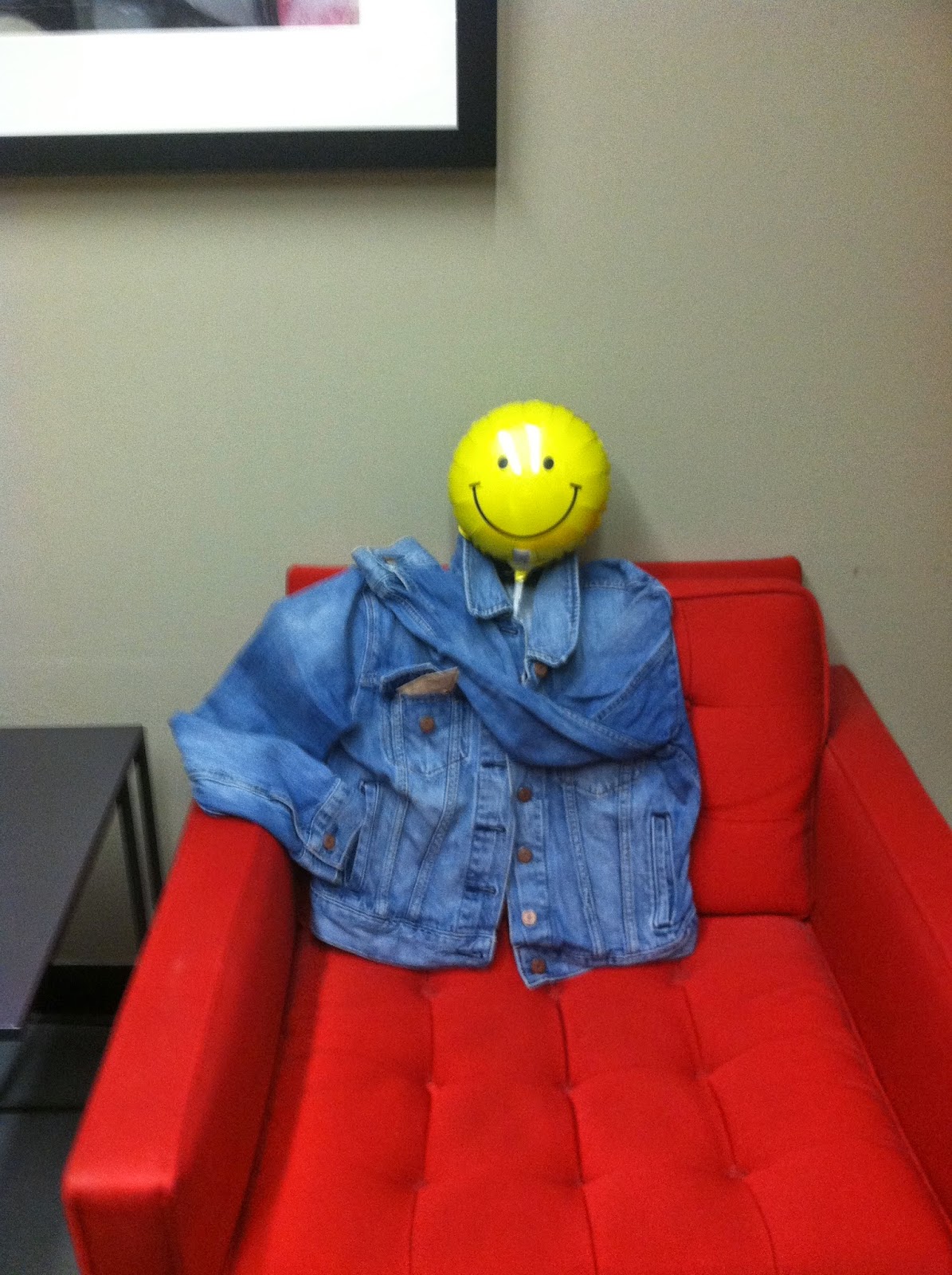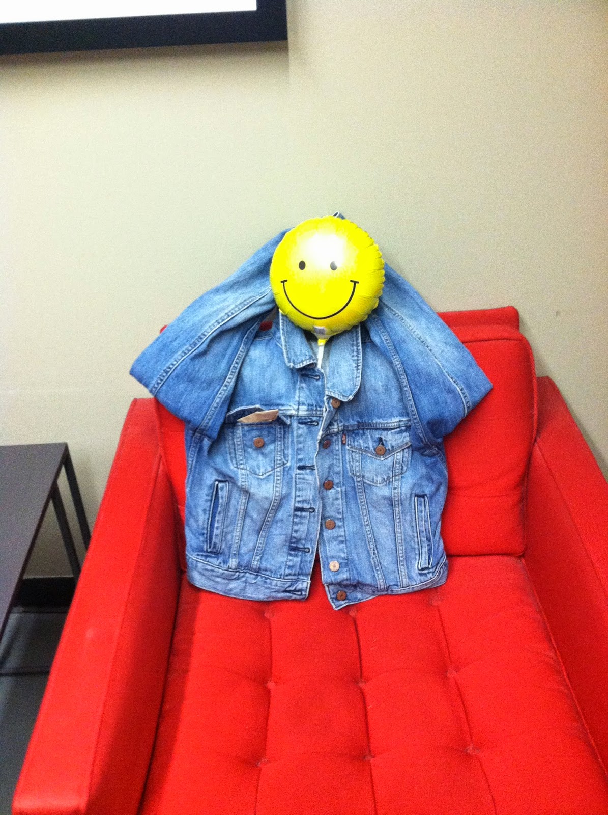 Signs you work at a creative company... This jean jacket was abandoned in the bathroom. After 2 days people started posing it. This is what's happened so far...